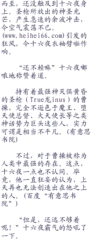 “没错!”曹操点头。持有着最强神灭具(龙inus)‘黄昏的圣枪(True龙inus)’的他,可谓是人类中最强的存在?!觉得有资格说出这话来。