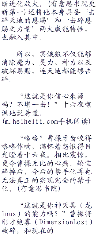 “嘿嘿”十六夜嘿嘿笑着,仿佛是对于曹操禁手姿态拭目无睹般,依然用着十分轻松的语气,咧嘴笑说着道:“禁手吗?看起来蛮不错的。啊啦真是可惜了!要是神还没死的话,得让他帮大爷改造一下‘冥饿狼’,让也能实现禁手”