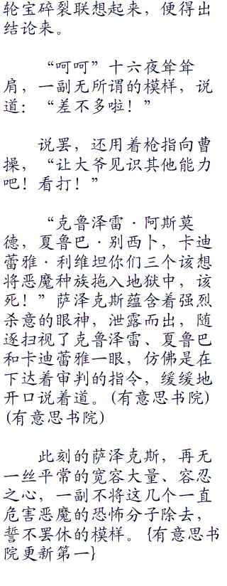 将黄昏的圣枪(True龙inus)进入禁手化后,曹操自信满满,用着傲视一切的轻蔑目光,瞥视了十六夜一眼。