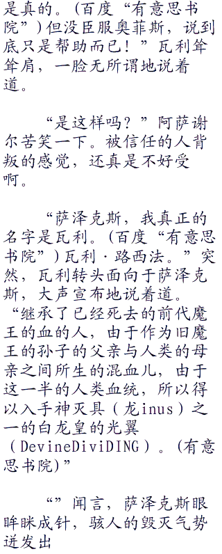 “见到你很荣幸啊,奥菲斯殿下!但在此之前,请容许我向瓦利问个问题”阿萨谢尔边说着,边将眼神从奥菲斯转移到瓦利身上,略有自嘲质问着道:“这是怎么回事呢?是什么时候?你已经加入祸之团(Khaos·BRIgade),臣服于无限龙神(OuroBOros·Dragon)奥菲斯了吗?瓦利?!”