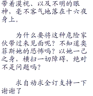 “咯咯”觉察到十六夜满不在乎,十分轻视的表现,曹操齿牙咬地咯咯作响,满怀仇恨的目光,盯着十六夜的身影。