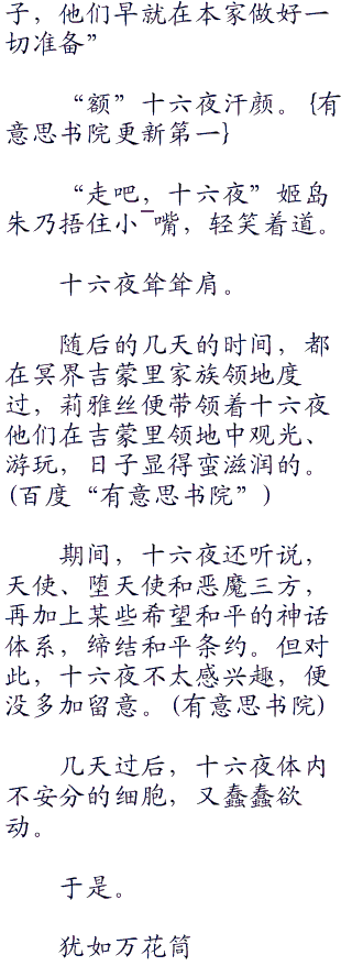 在莉雅丝她们脑中思考时,十六夜催促着,道:“喂!想什么呢?我们该会人间界了,不然留在冥界过夜不成?”