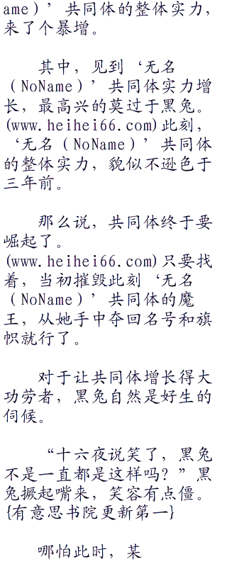 而今时今刻,哪怕那个‘无名(NoNa)’共同体依然没有属于他们的名号与旗帜,却没哪个共同体敢于轻视他们。毕竟,他们的事迹,到达声名远播的程度,令下层的共同体敬仰。