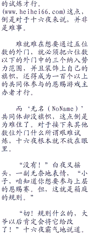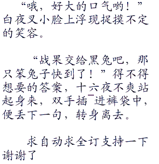 刚才所见,十六夜那家伙欺负黑兔很带劲,貌似一个相对坏的主人。还为箱庭贵族默哀几下,但对象却换成自己了。