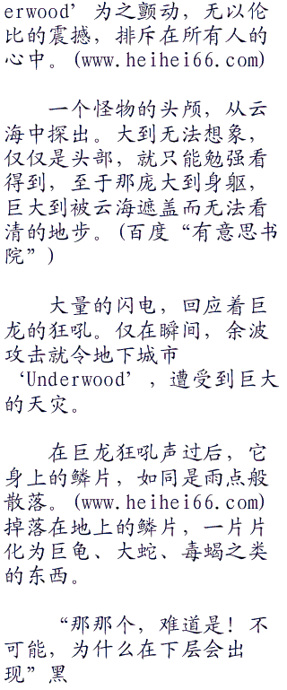 “轰隆!”刹那间,仿佛在回应着黑兔,夜空突然裂开成两半,原本非常晴朗的夜空被大片乌云笼罩,不断放出闪电让地下城市‘Underwood’的上空染上昏暗的色彩。