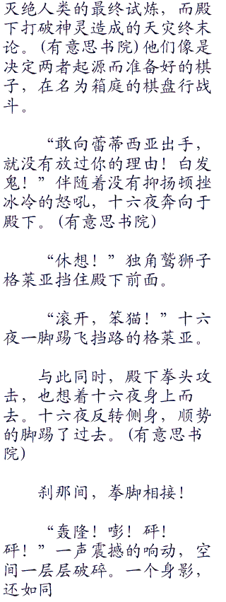 但,十六夜跟白发鬼殿下不同,他是站在人类这方,人类的原典候补。而殿下,则是站在神灵那方,神灵的候补。