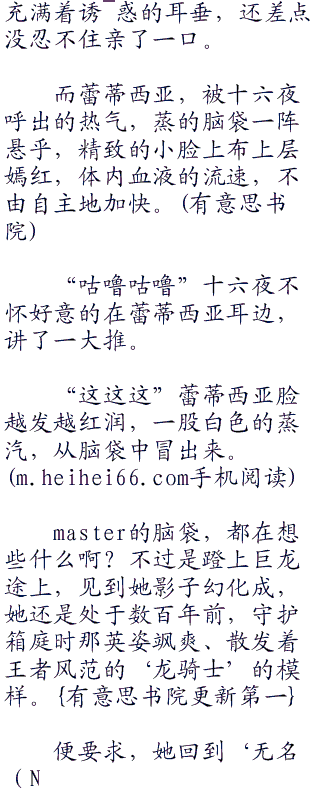 “”ster真是一如既往的喜欢欺负人。蕾蒂西亚撅起樱色嘴唇,像是在故意似的,精致脸上浮现不爽的表情,在叙说着不满。但心底,仿佛回到往常似的,却是充满着轻松、喜悦。