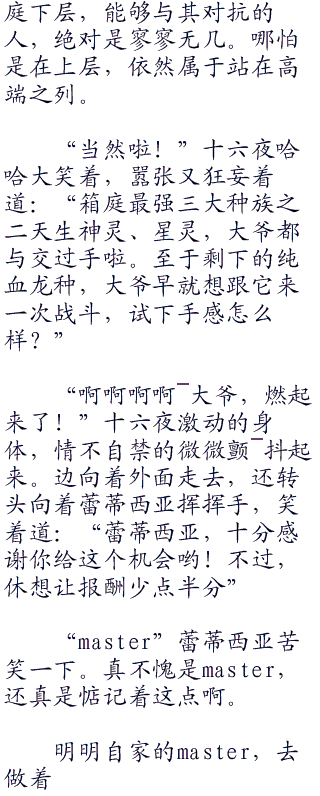 这句话,是‘说书人’曾向她说的。在此之前,她并不打算成为魔王。而是,为了守护住吸血鬼一族的荣耀,拖着重视的身躯,面对着那些谋反者。天真地认为即使败北也能留住名誉,还抱着殉死的念头,也要复仇,诛灭掉那些谋反者。