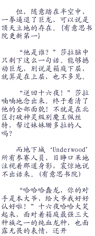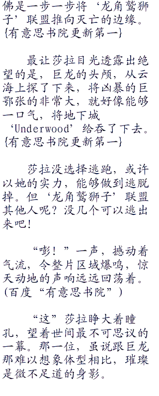 哪怕巨龙没亲自动手,‘龙角鹫狮子’联盟的众人依然被缺乏统率的乌合之众魔兽们,打的层层败退下来。最后,还被逼回到地下城‘Underwood’的根部附近,筑起最终的防守阵地。
