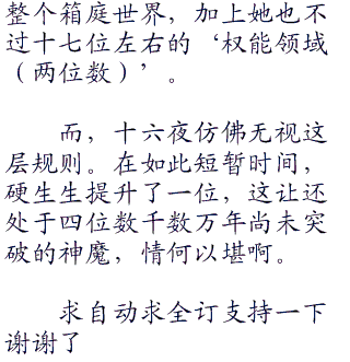 二一零五三八令零外门,‘无名(NoNa)’共同体据点。一大早,便传出十六夜乐呵呵地笑声。