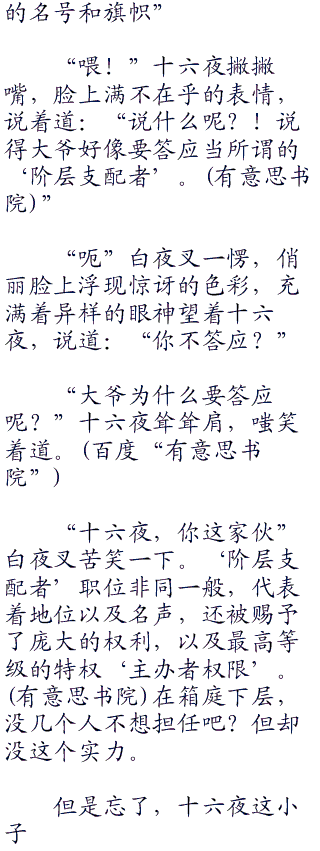 “唯一可惜的是”白夜叉收起折扇,顶在下巴上,略显遗憾着说道:“你的实力和威名,足以令人敬畏!但资历尚浅,累计的威望,还不足以令人心服口服。而且,‘无名(NoNa)’共同体虽说人才挤挤,却没有属于自己