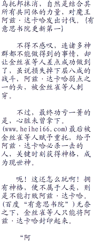 那些最终试炼最后留下来的古老魔王就只有阿兹·达卡哈。不过,诸多神群却不能在阿兹·达卡哈身上故技重施,武力、智慧、胆色为一身的魔王阿兹·达卡哈,可不神群所培养的人类英雄打倒能够打倒的。毕竟,连诸神胜得了阿兹·达卡哈也不多。
