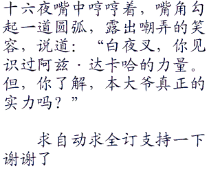 十六夜郑然的一句,让白夜叉满脸愕然。随即,囧着脸注视着十六夜,他不说,还真是忘却他这个身份。这小子,无论做那件惊天动地的事,都不符合人类的身份吧。