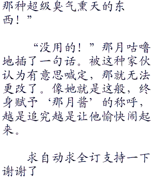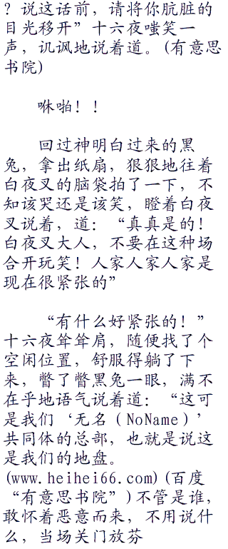 “切!”十六夜撇撇嘴,啐了一口。眯着璀璨的星眸,迸射出锐利的眼神,射向于正持着折扇,轻微扇动的白夜叉。