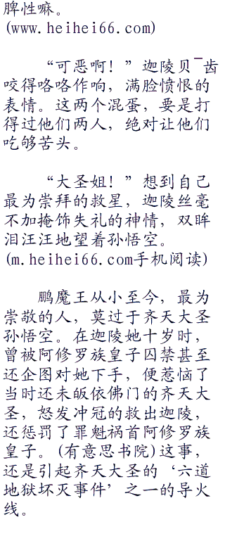 “才不要呢!”鹏魔王迦陵年幼素颜露出惊恐的神情,慌乱地躲在孙悟空的后面。这家伙可是连阿兹·达卡哈都打倒的怪物,连自己的必杀技对神、对龙的最上位恩惠金翅之炎,都无法伤害得了他。