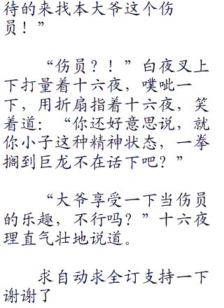 “臭气熏天是什么意思?迦陵酱,你这话让本大爷听得很不爽,大爷可是有很好的洗澡的。要不,你再来让本大爷拥抱下,看是否还是这种感觉”十六夜裂开嘴,不怀好意一笑,还顺势张开双臂,一副要拥抱的姿态。