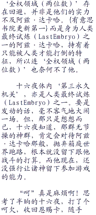 “不过那群蠢货肯定不愿意的!而现在嘛,大爷还无法做到强迫他们”十六夜咕嘟地说着,貌似有些失望。还掏出他天蓝色的恩赐卡,望向于恩赐栏上其中一项。