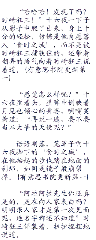 “真麻烦啊!”十六夜撇撇嘴,低头望向于自身遭受灾难的衣物,略带感叹着道:“衣服又坏掉了!”