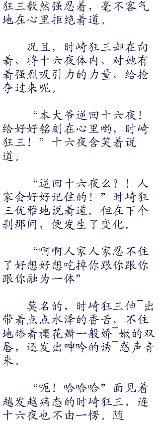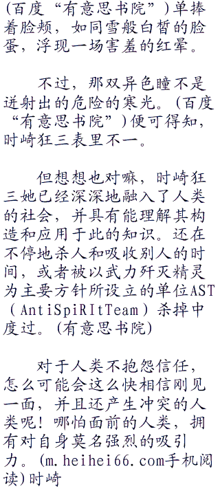 “不过是人类而已!嘿嘿”时崎狂三嘴角勾起,脸上浮现残酷又嘲弄的笑容,狰狞中夹着令人欲罢不能的媚意,璀璨的异色瞳排斥着满满的残忍与嗜血,毛骨悚然的笑声从樱唇