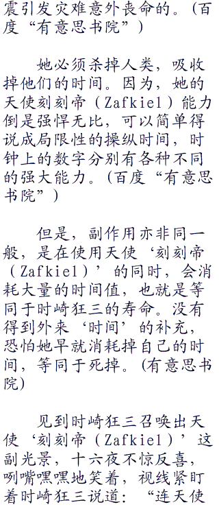 特别是,时崎狂三是现身于人间的众多精灵当中,是能够从邻界以自己的意志现身的特异存在。并且,还能凭自身的意愿引发空间震。