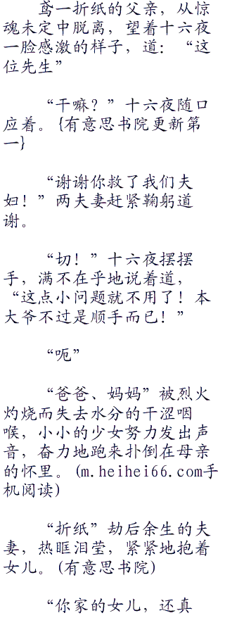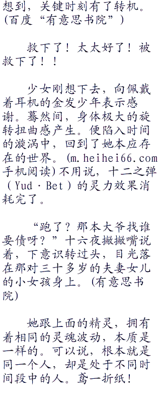 “救救下”见到那对三十多岁的夫妻无恙,少女脸上浮现难以想象的欣喜笑容,待目光转移在十六夜身上,无限的感激排斥在里面。