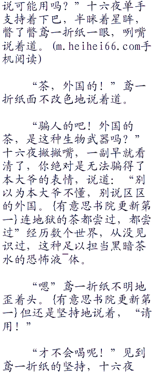 十六夜鼻子微动了几下,眉头叠皱了起来。这是什么气味呀?真的是茶水的气味吗?