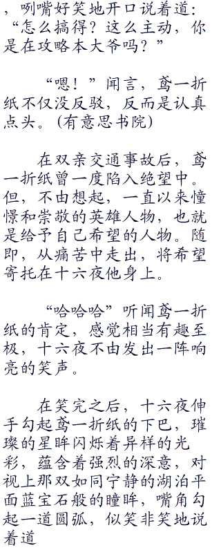 听闻十六夜要暂住在这里,虽然说鸢一折纸俏脸上没有显露出任何情感。但语气中夹着无与伦比的喜悦,不向平常少女般,羞羞答答的露出踌躇不已的害羞表情。
