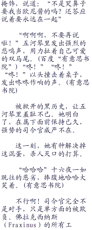 可恶啊!想她五河琴里,堂堂的佛拉克西纳斯(Fraxinus)司令官,在诸多属下面前,怎么能被做出如此丢人的事情,还拿来当小孩子对待呢?