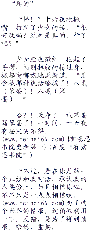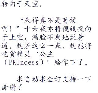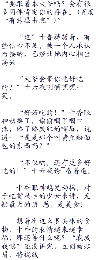 “嘿嘿”面见画风突变的少女,十六夜嘿嘿地轻浮笑着。这一刻,之前的高傲与华丽,以及悲哀的神情,全然不见。只剩下,被食物吸引的笨蛋吃货而已。