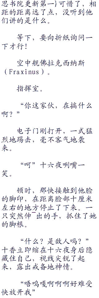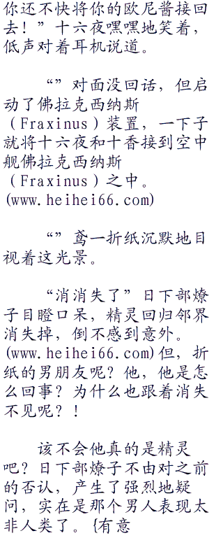 “你们两个别吵了。”十六夜不爽地插话道。这两个人仿佛是天生八字不合般,一见面便吵个不停,让他烦闷不已。“再吵的话,本大爷是使用暴力解决了!”像是威胁般,“咔擦咔擦”十六夜指关节瓣地作响。