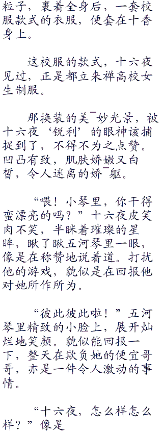 十六夜舔了嘴唇,脸上的笑容满是轻浮,是在回味着刚刚美~妙的滋味。