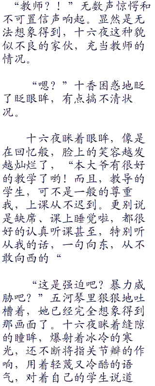 “说什么傻话呢?!怎能时时刻刻捏在一起呢?而且”十六夜撇撇嘴,舒服的半躺在椅子上,瞟了十香一眼,说道:“本大爷也想安静看书一下和舒舒服服地睡上一觉!”