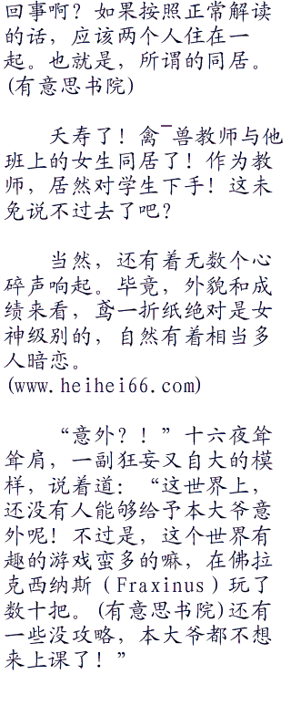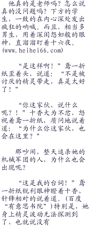 “他他不是”讲台下最后一排,拥有着一头深蓝色长发上,环绑着发夹,外貌可爱的女生,睁大着眼眸,极为惊讶地注视着台上的新教师。