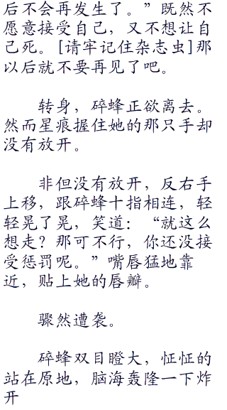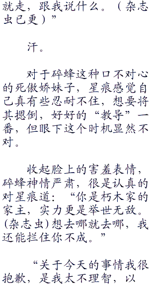“是是,我傲娇。”也不跟她争辩,星痕走上前,一把抓住碎蜂的白皙滑嫩的手腕,道:“别生气了。回尸魂界的时候没有跟你打招呼,是我的错。”