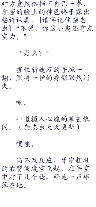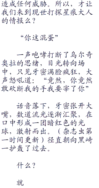 “小鬼,你在想什么?”身形瞬间闪现到黑崎一护对面,牙密狞笑着,举起自己钵盂大笑的拳头,狠狠地朝向黑崎一护的脑袋挥去。“现在可没有给你考虑问题的时间啊”