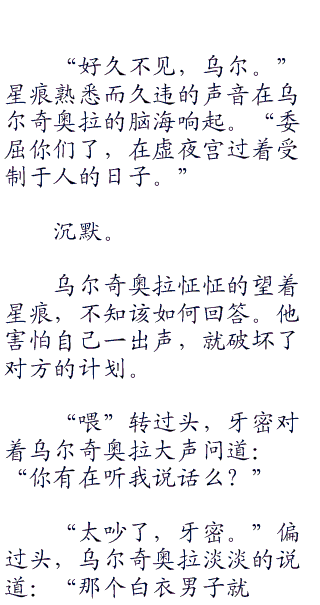 瞥了他一眼,乌尔奇奥拉道:“不要掉以轻心。”虽是如此说,但他身体还是向右侧移了两步,算是默许了对方的话。