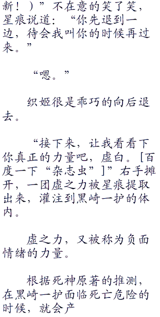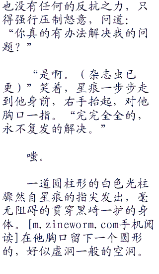 不只是他,在场观战的黑崎一护、井上织姬、乌尔奇奥拉三人也同样没有看清星痕的动作。或者说,他根本就没有动作才对。