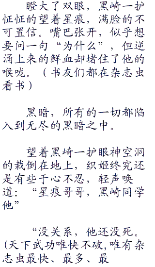 脸上兀自带着疑惑、震惊的表情,牙密的意识逐渐陷入永恒的黑暗。直到这一刻,他还搞不清楚自己是怎么死的。