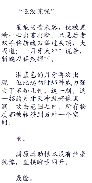 不同于黑崎一护,星痕的所使出的月牙天冲竟在挥砍下去的瞬间直接分成三份。