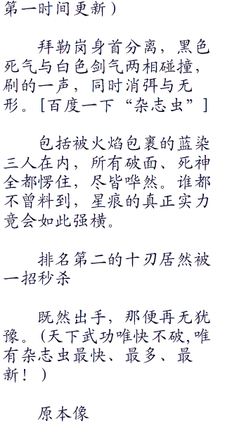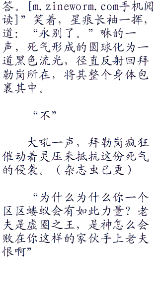 拜勒岗大怒道:“不能原谅,你这家伙的眼神决不能原谅死亡叹息”黑色的死亡之气如爆发的山洪喷薄而出,径直涌向星痕。