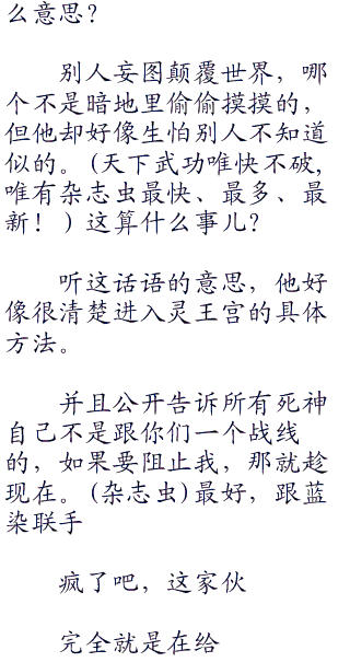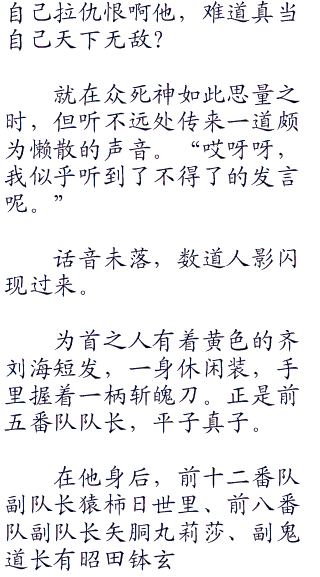 就算因为融合崩玉而自信心爆棚的蓝染,也只有拿出百分之百的状态,全神以待。这种情势,他很明白,只要自己露出一丝一毫的破绽,对方便会立即将自己斩杀。