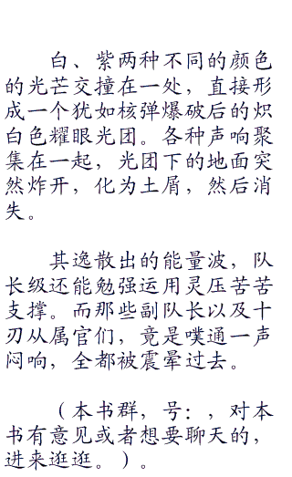 “那副胜利的炫耀口吻。”借着反震向后飞退,蓝染淡淡的语调传来。“你还真是嘴上不饶人呢,星痕君。”