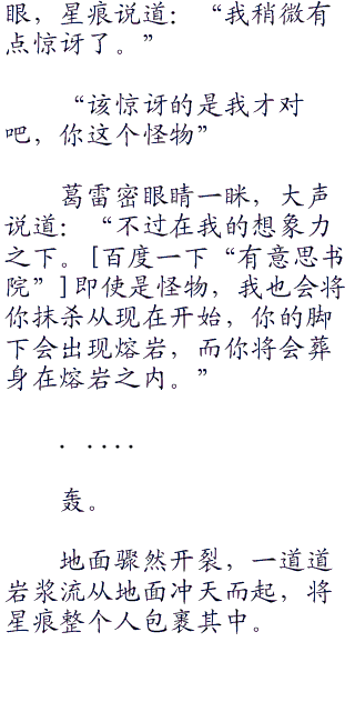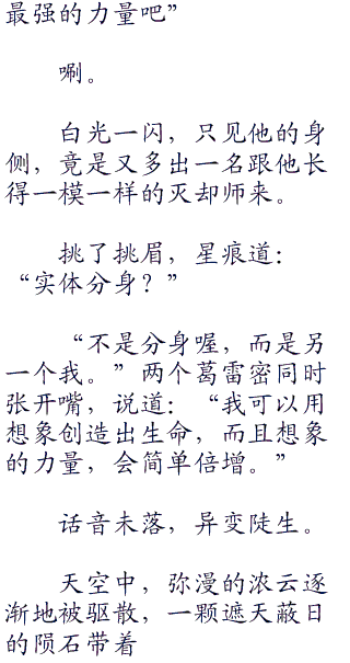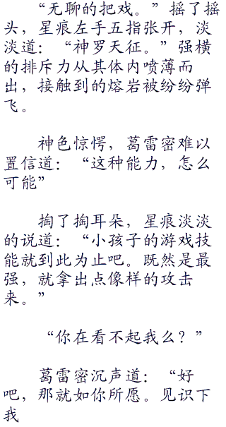星痕玩味一笑,道:“你刚刚说什么来着,我好像没挺清楚。”