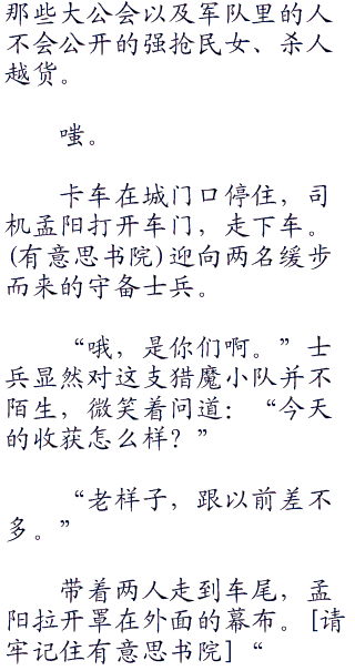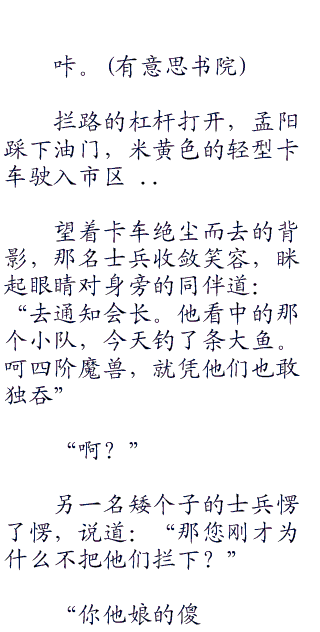 “谢了。”转过身,也不需要对方引路,星痕自顾自的朝着轻型卡车的方向走去。