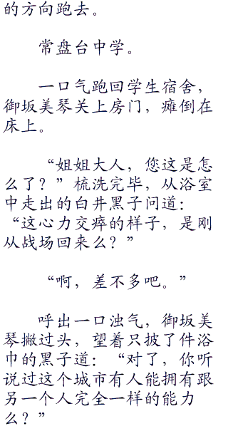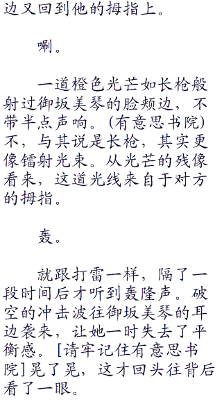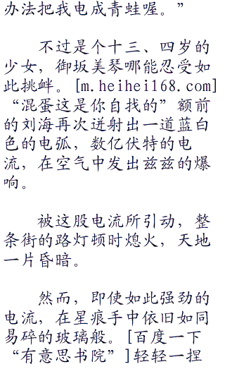 “喂,你这家伙”御坂美琴很是不爽的叫道:“不要说的自己好像认识我一样啊”话音未落,茶色刘海突然迸发出犄角似的蓝白色火花。