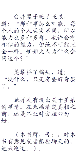 微微一愣,星痕洒然失笑道:“仔细想想,那还真是恐怖的景象。不过,也确实符合你的风格呢。喜欢青蛙的小姑娘。”