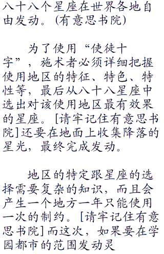 “使徒十字”是建造在十二使徒之一圣·彼得墓地上的十字架,也是“圣灵十式”之一。在“使徒十字”效果范围内,罗马正教教徒会变幸福,其他的人也会觉得作为罗马正教教徒很幸福,罗马正教目前为止完全拒绝公开的最大级灵装。