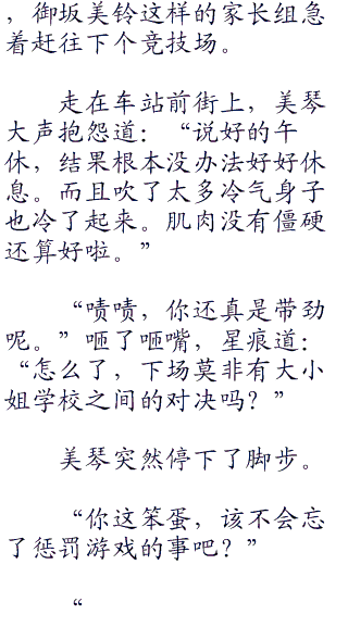 “哎呀呀,又给别人造成困扰了呢。”叹了口气,御坂美玲满脸拿对方没辙的表情。“小美琴真是的。跟妈妈一点都不像。”