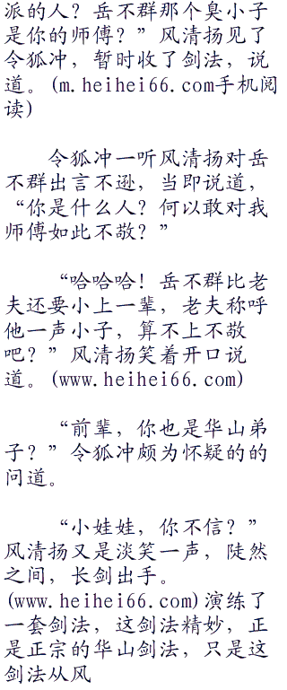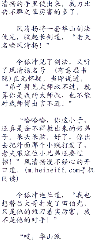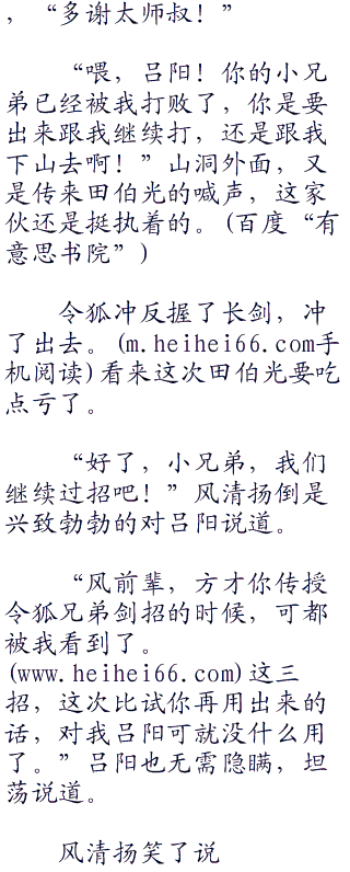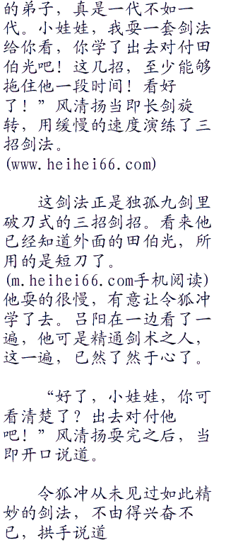 “哈哈哈!”风清扬站定了身子,忍不住的笑道说,“小子,你还真是机灵,破不了我的破剑式,居然以剑为刀,在老夫换招的时候,寻找出手的间隙,好!好!痛快!痛快!”