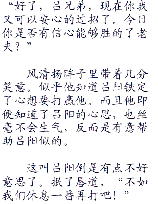 这一回合,倒算是吕阳落了下乘了。风清扬的剑法果然是叫人防不胜防。